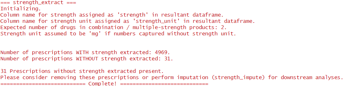 From the log files, 31 rows of prescriptions did not have strength/dosage information available.