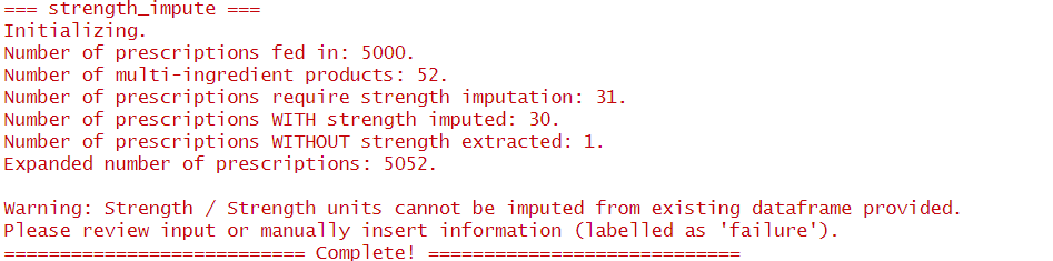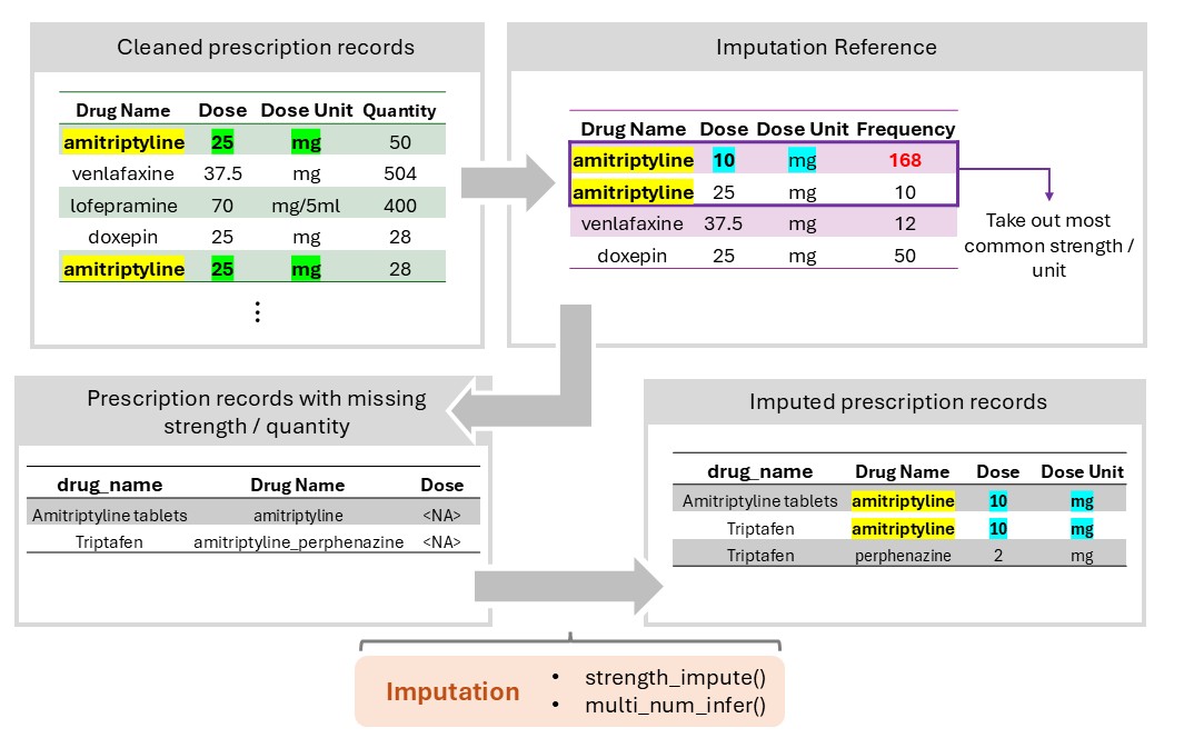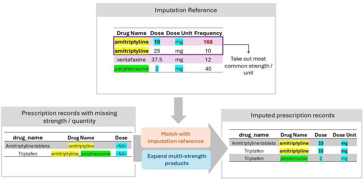 By using the original provided dataframe as training dataset for imputation, it also allows the flexibility to capture differences in practices, where the most commonly prescribed dose/strength could differ across regions.