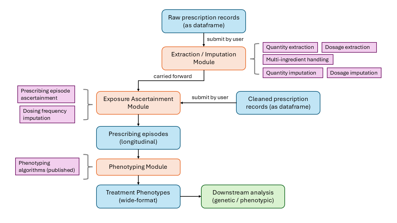 The package is divided into three core modules, where users can submit different inputs depending on data availability and cleanliness: