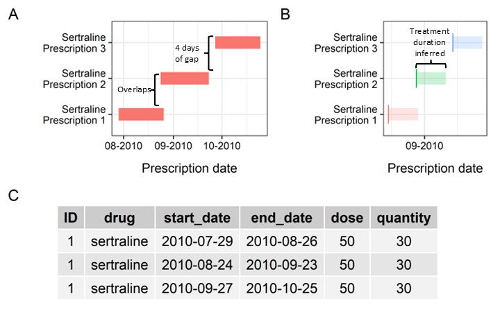 These need to be merged to form a treatment episode (Figure 1, Panel C).