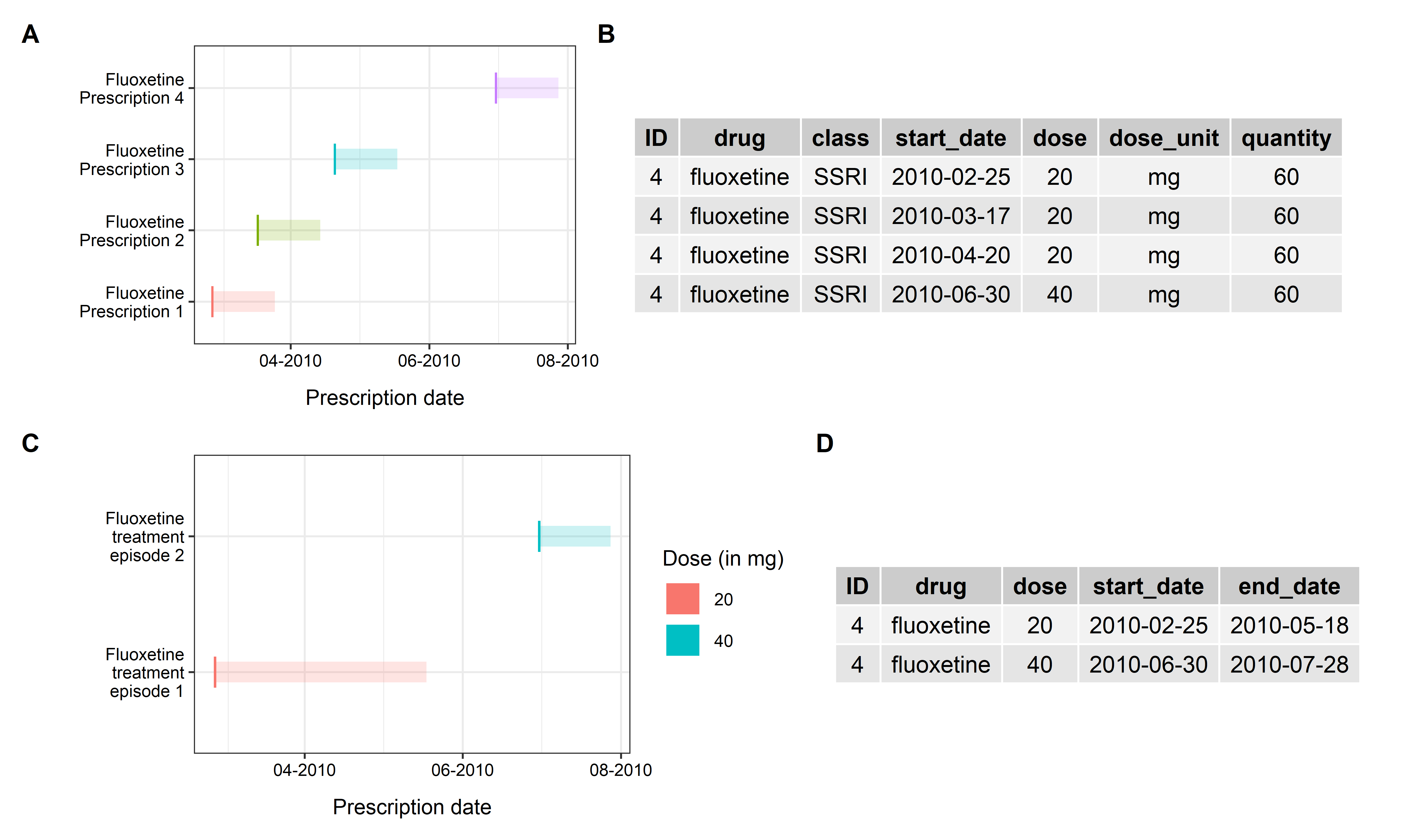It returns two prescribing episodes (as shown in above figure, Panel C) as: